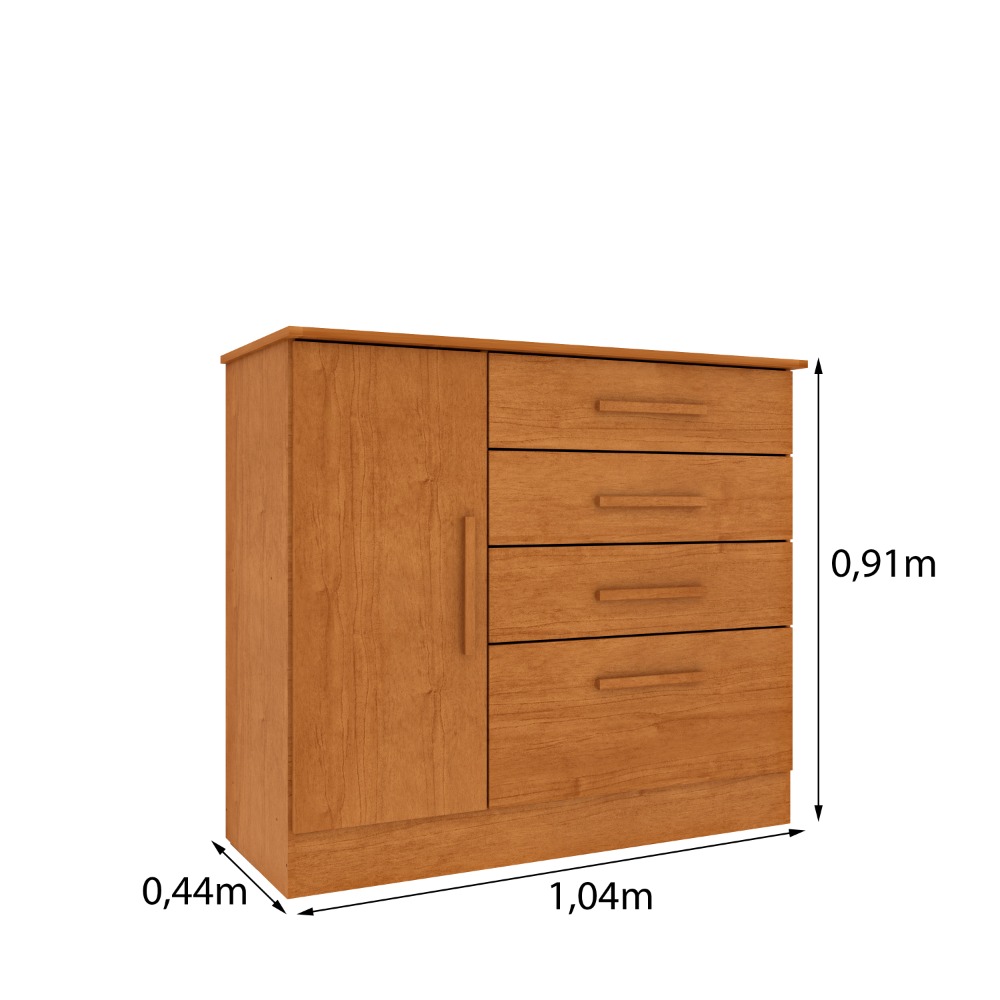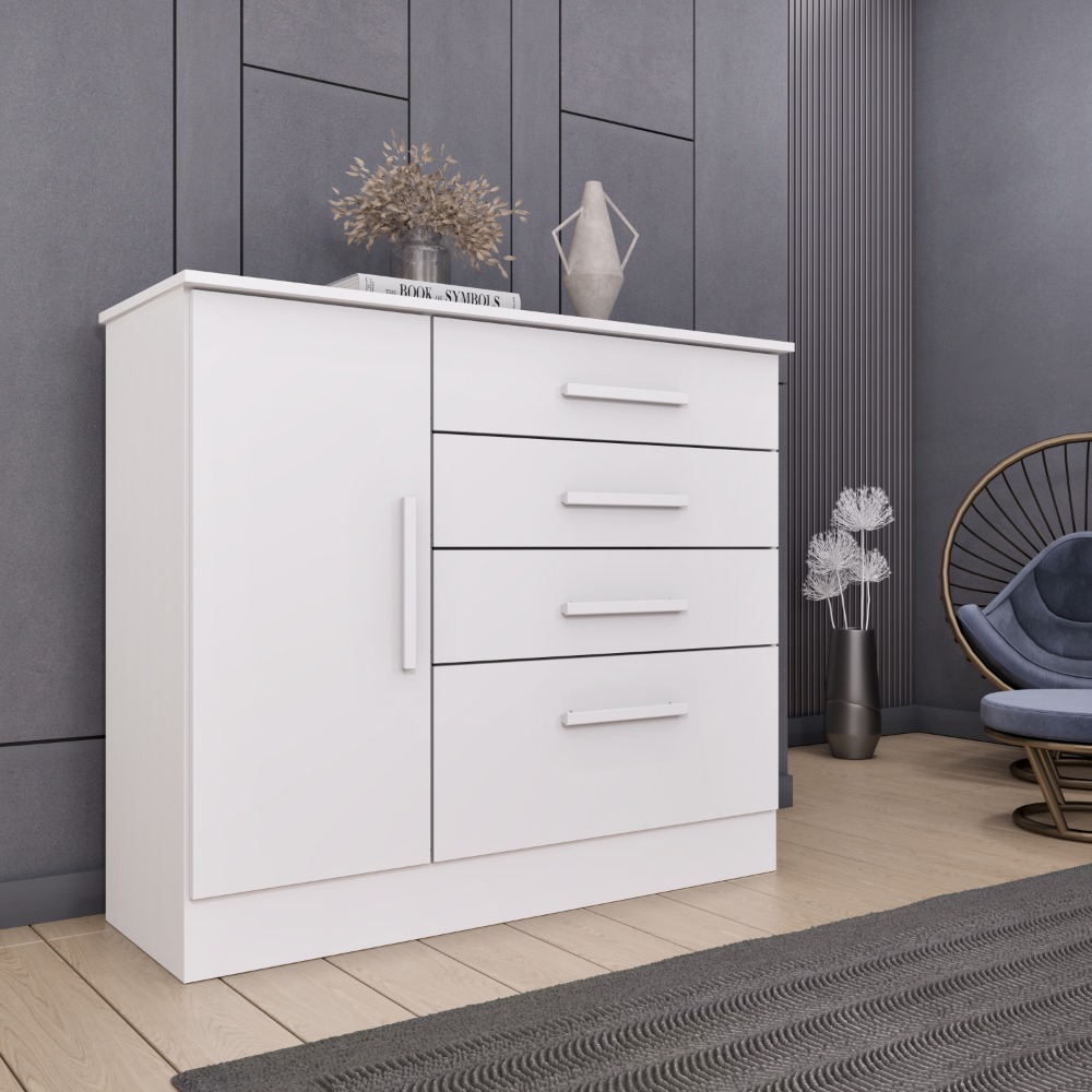 Cômoda Tcil Chicago 1 Porta 4 Gavetas Neve
