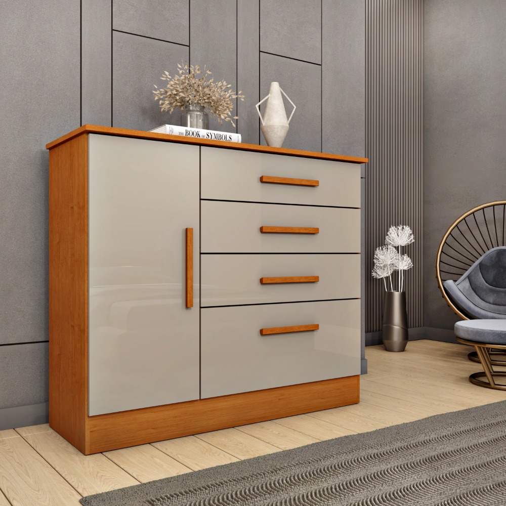 Cômoda Tcil Chicago 4 Gavetas 1 Porta Cinamomo Off
