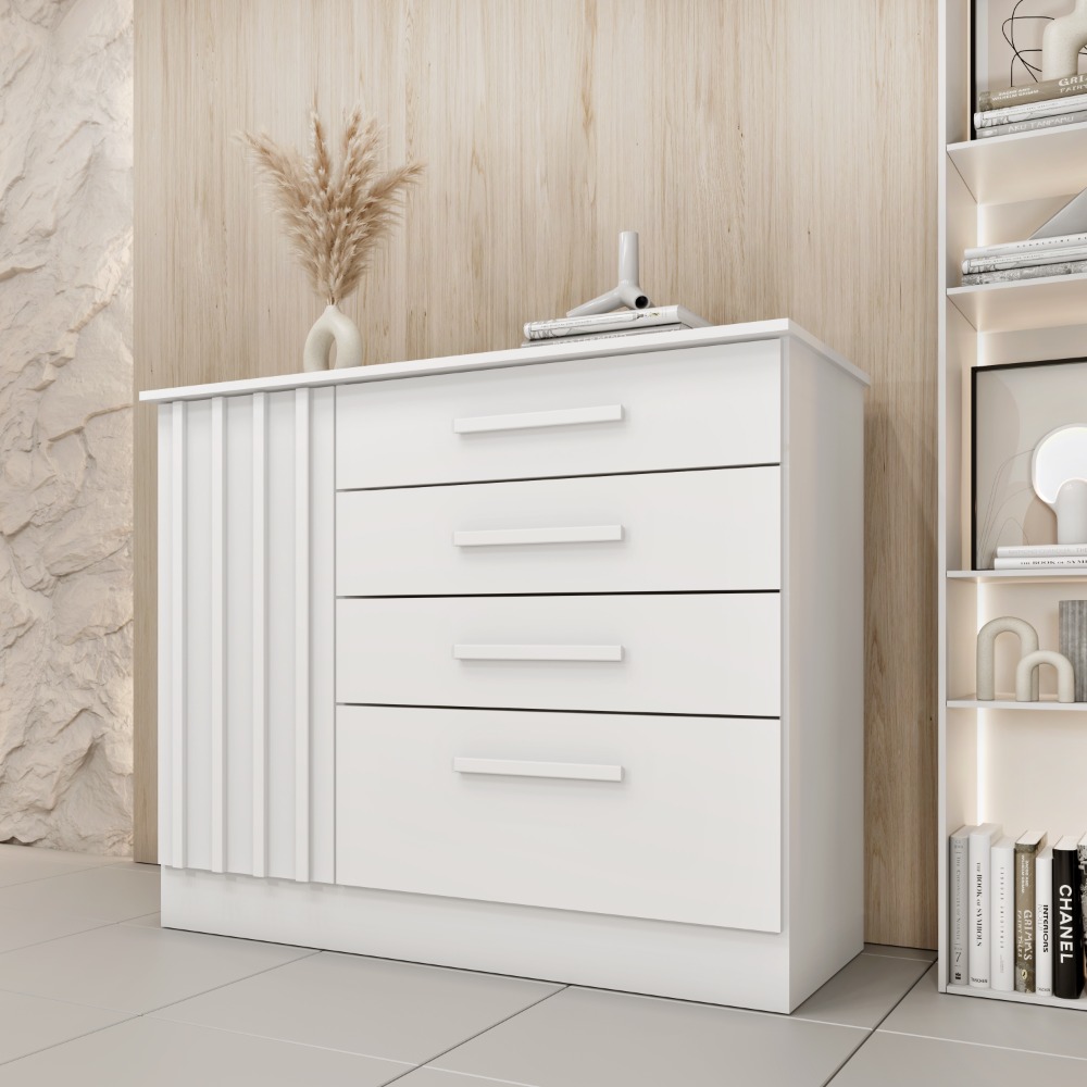 Cômoda Tcil Guarani 4 Gavetas 1 Porta Ripada Neve