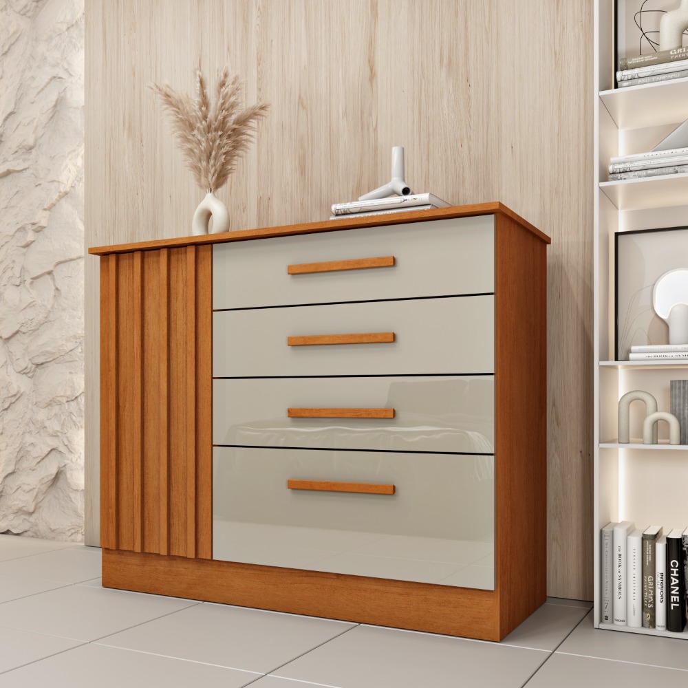 Cômoda Tcil Guarani 4 Gavetas 1 Porta Ripado Cinamomo Off