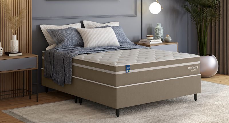 Conjunto Box Plumatex Durospring P Uno Bege Queen 158x198x30