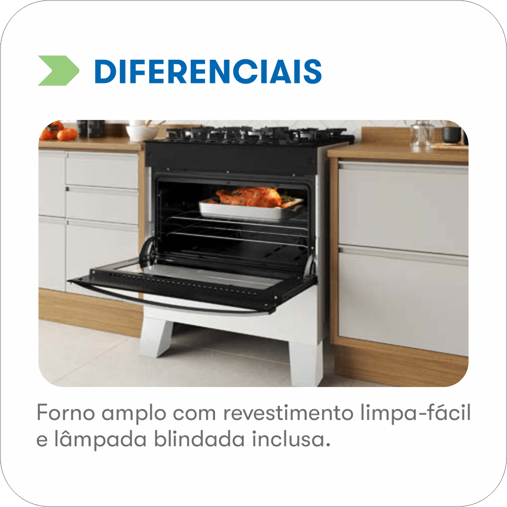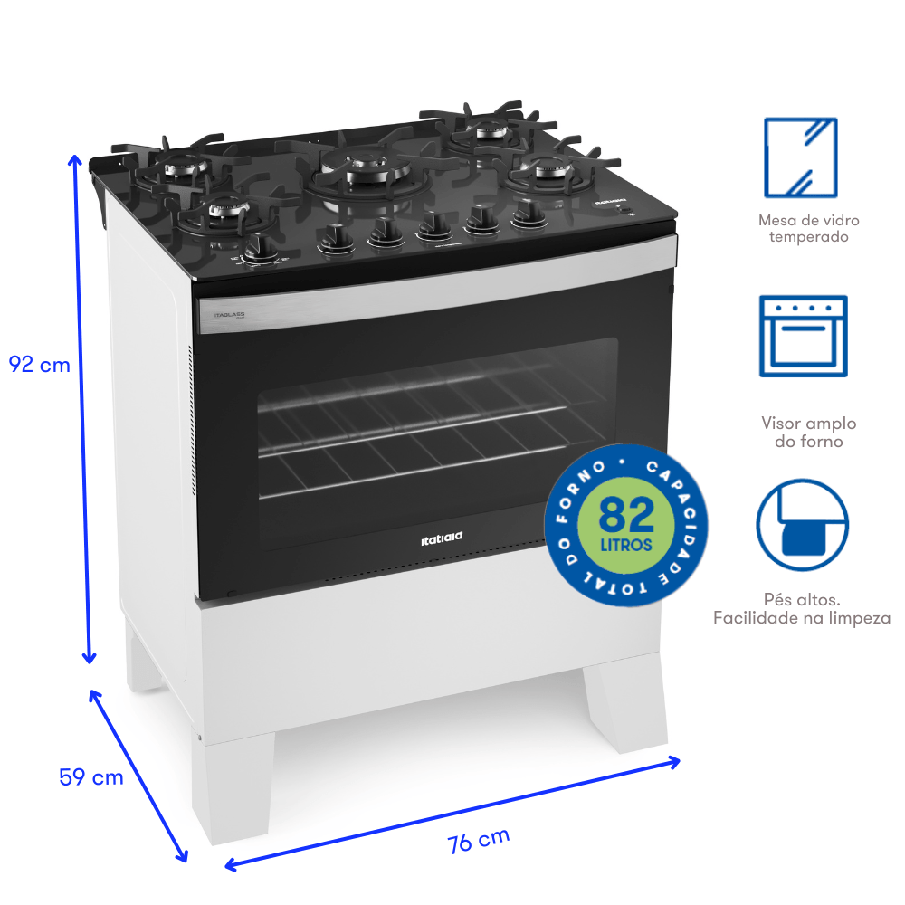 Fogão Itatiaia Itaglass Plus 5 Bocas Mesa de Vidro Automático - Branco