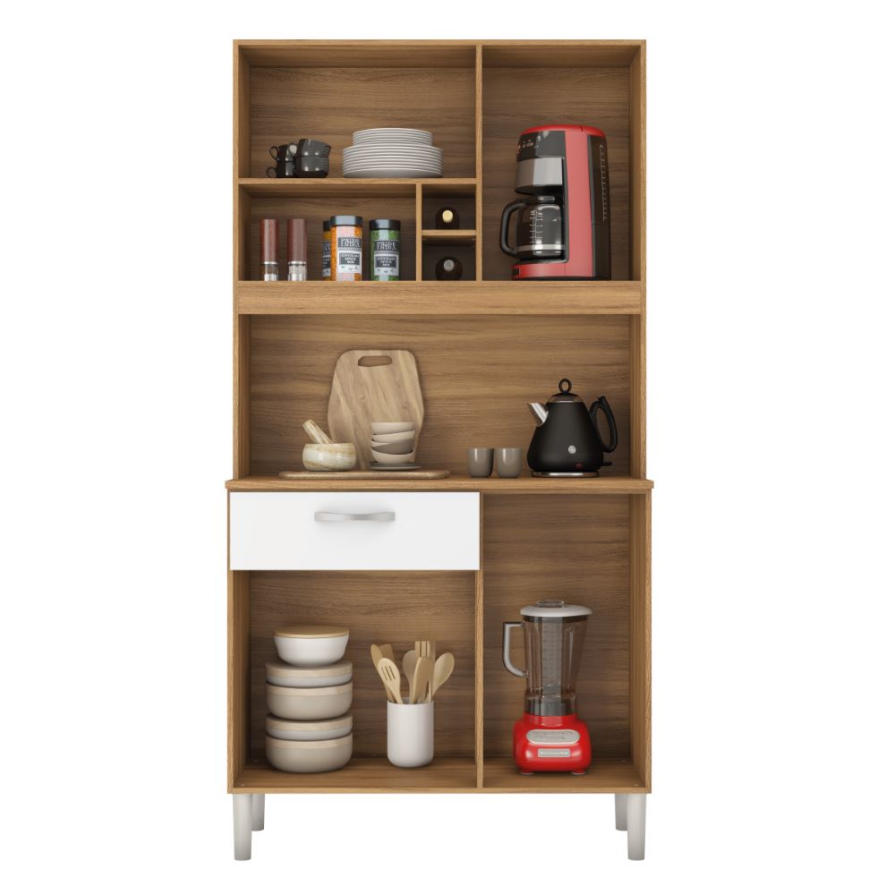 Kit Cozinha Demobile Malta 4 Portas 1 Gaveta Amendoa Branco