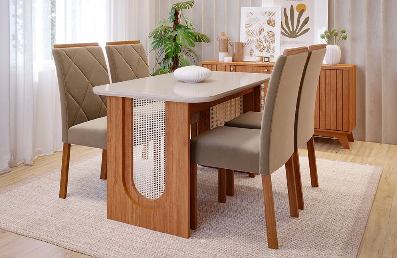 Mesa Cimol Móveis Valentina 4 Cadeiras Nicole Cinamomo Off