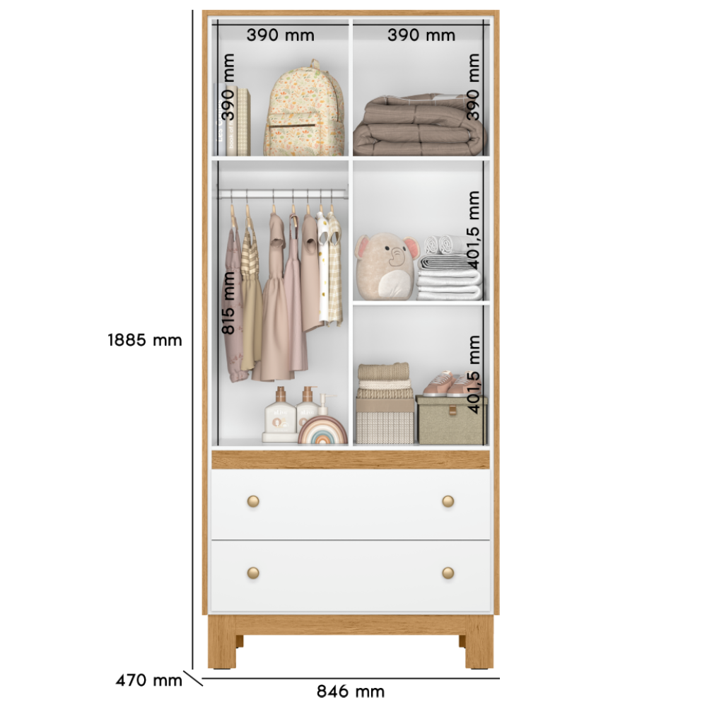 Roupeiro Qmovi Infantil Flora 2 Portas 2 Gavetas Branco