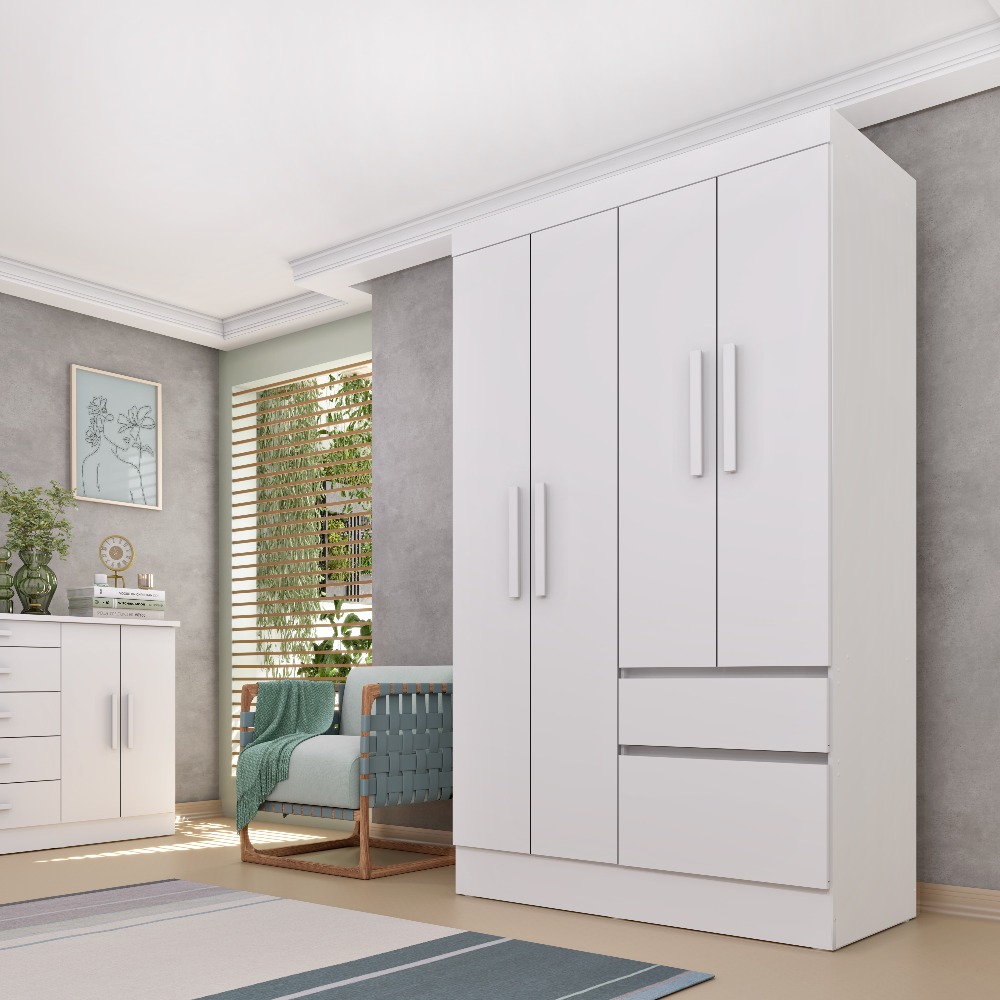 Roupeiro Tcil Oregon 4 portas 2 Gavetas Neve